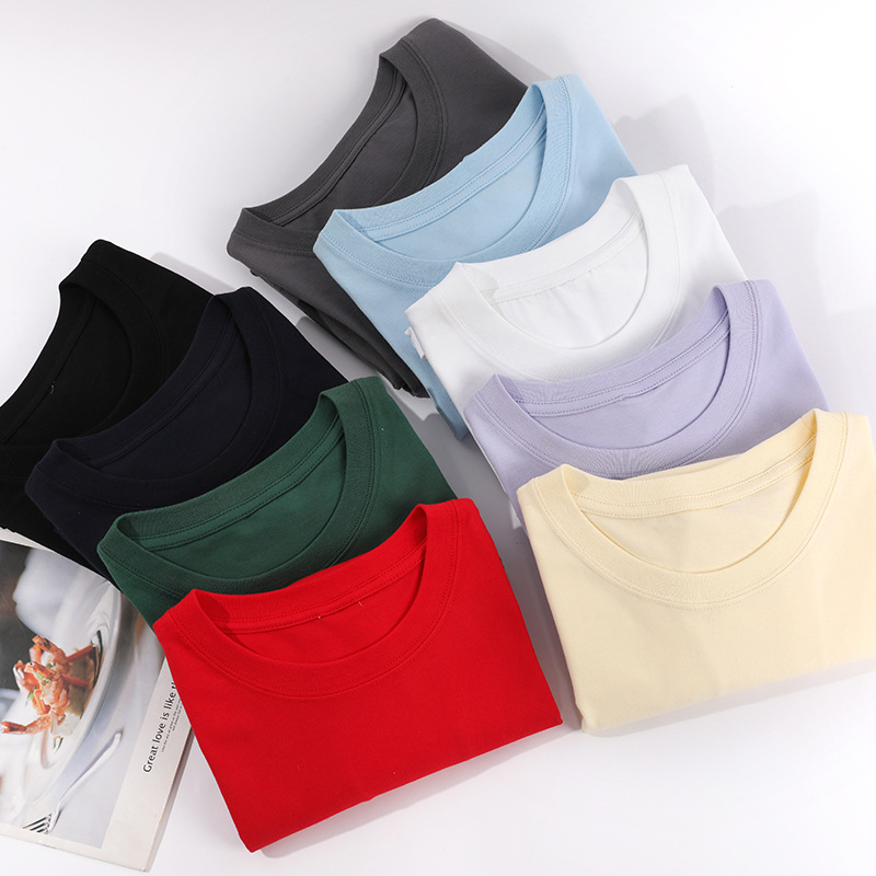 Kaus kerah bulat pria, baju katun murni warna solid trendi lengan pendek cetak t musim panas AG280g Mark Qin