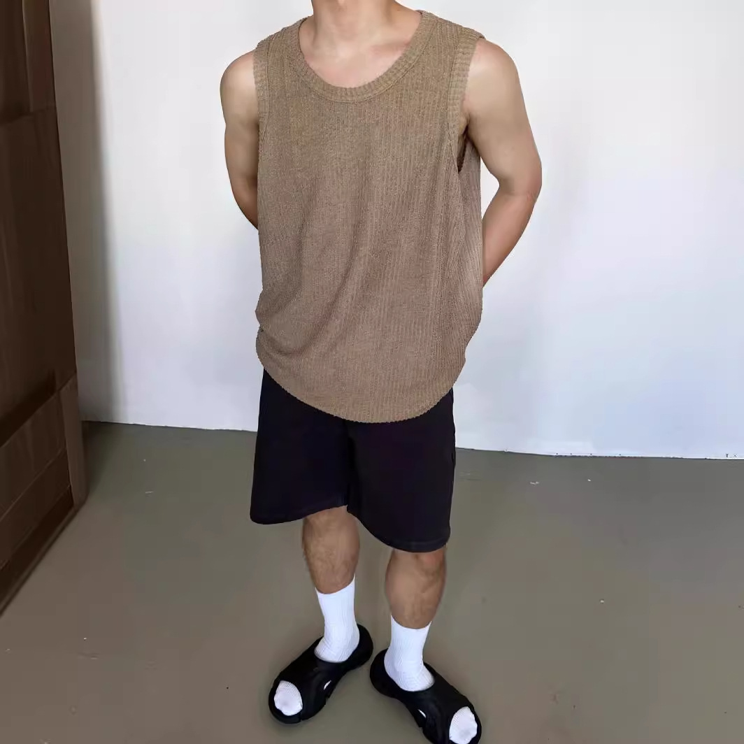 Kaus tanpa lengan gaya baru musim panas 2024 kaus tanpa lengan lubang longgar kasual rompi keringat warna solid rompi dalam pakaian dalam