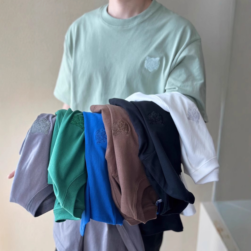 Kaos Lengan Pendek Pria Bordir Kepala Harimau Berat Katun Murni 260 Gram Model Baru Pakaian Musim Panas Kasual Longgar Remaja Setengah Lengan
