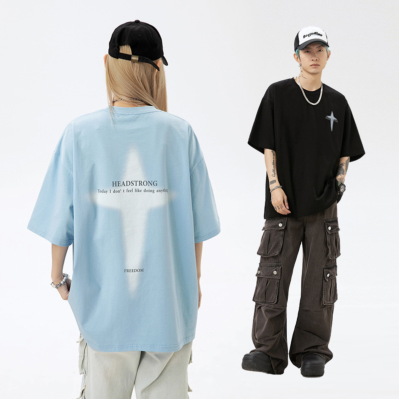 300g克重磅纯棉美式潮流印花短袖T恤 男女夏季宽松潮牌跨境爆款