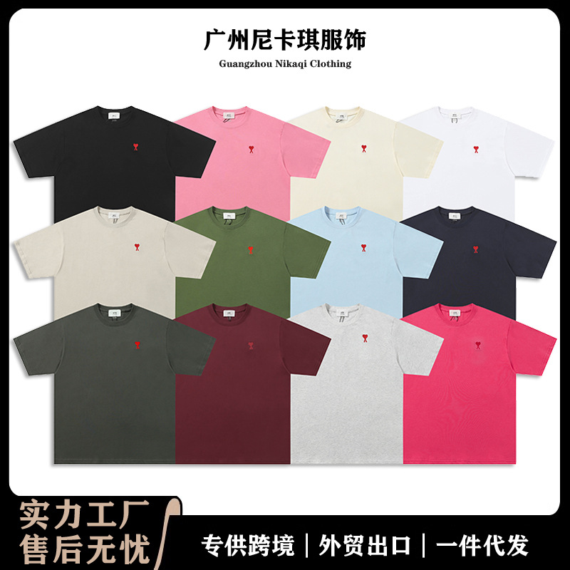 Atasan Pasangan Pasangan Longgar Sederhana Wanita Bordir Hati Kecil Lengan Pendek Musim Panas ami T-shirt Kombinasi Hati Besar Perdagangan Luar Negeri Mudah Dipadu Padan