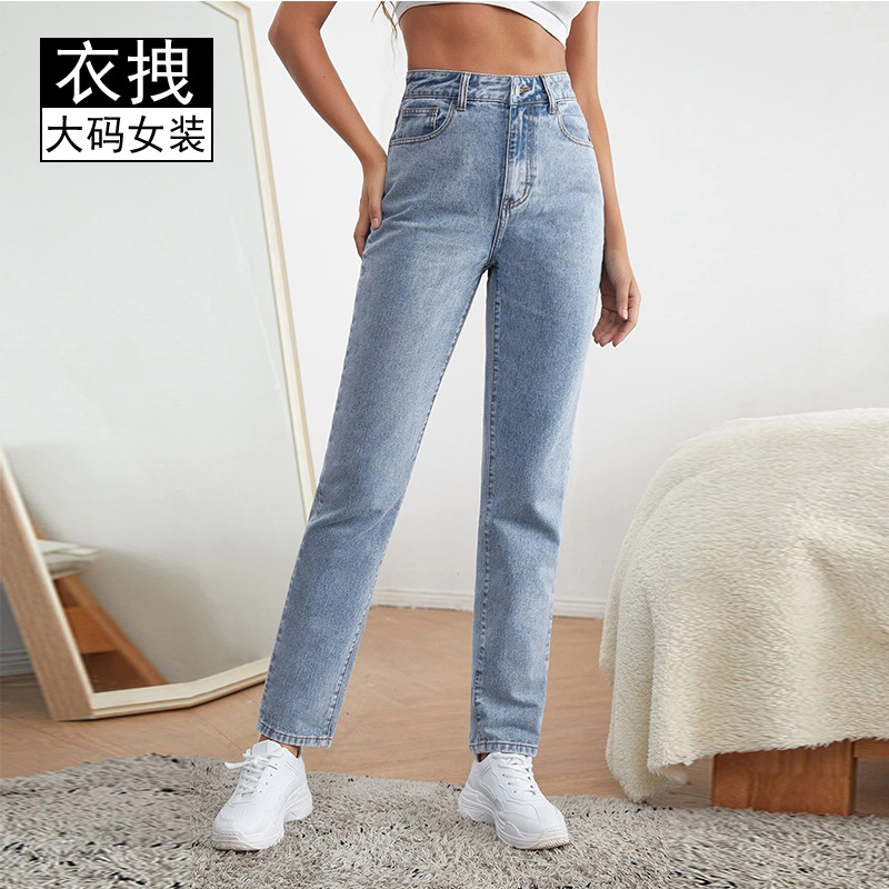 Celana jins elastis pinggang tinggi, celana jins trendi longgar, celana pelangsing, celana pinggang tinggi, elastis, baru, Musim Semi dan Gugur, ukuran besar