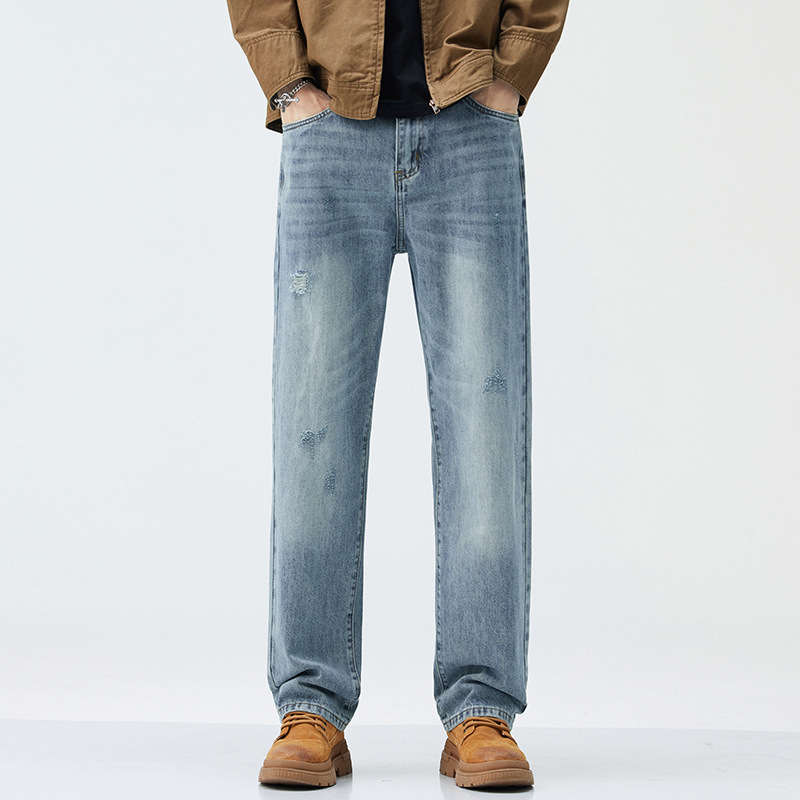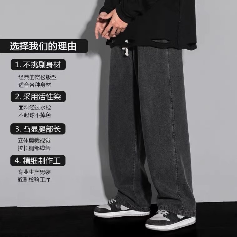 Celana Jeans Pria Celana Lurus Longgar Merek Trendi Model Musim Gugur Celana Panjang Kasual Empat Musim Model Baru Celana Pria Trendi Elastis Rambut Pengganti