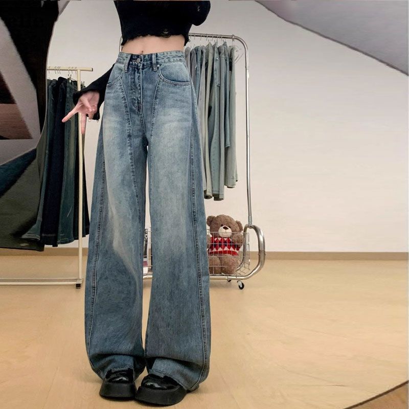 Celana jeans wanita FP tersedia, model baru musim semi dan gugur 2025, pinggang tinggi, ramping, serbaguna, longgar, lurus, potongan lebar, kasual.