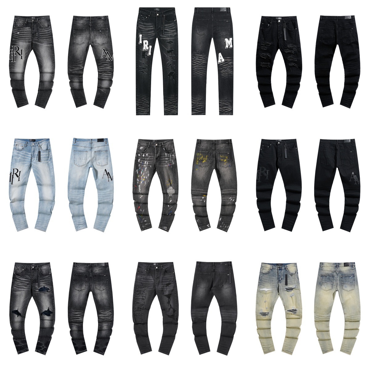 AM Pakaian Jeans Lurus Kasual Lubang Tinta Jalan Gaya Amerika Model Baru Perdagangan Luar Negeri Celana Slim-fit Pria Tinggi Ukuran Besar Trendi