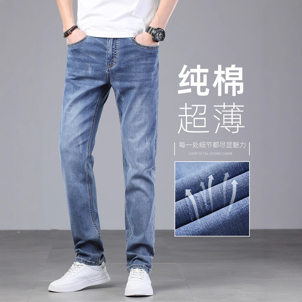 Celana Jeans Lurus Katun Kelas Atas Model Tipis Musim Panas Merek Trendi Model Baru 2025 Celana Longgar Pria Xintang Town Kasual