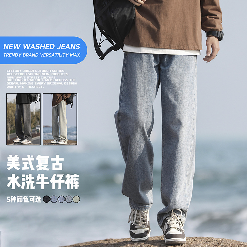 ACU pakaian pria jeans Amerika celana panjang kaki lebar, celana kasual lurus longgar musim semi dan panas 2024