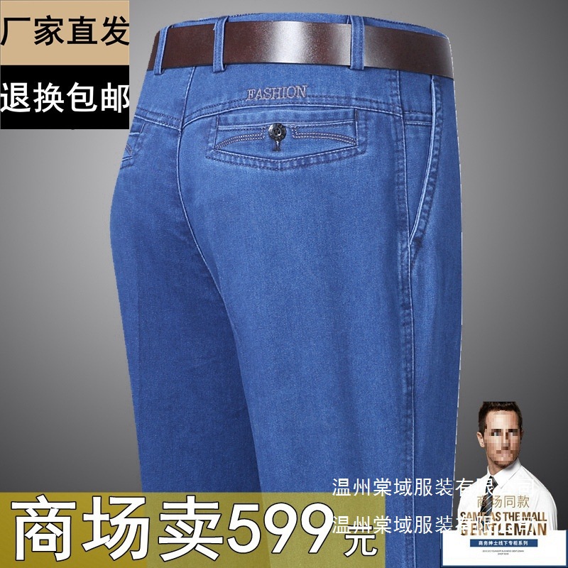 Celana Jeans Tipis Musim Panas Pria Lurus Longgar Musim Semi Musim Gugur Elastis Kasual Celana Panjang (Dukungan Rambut)