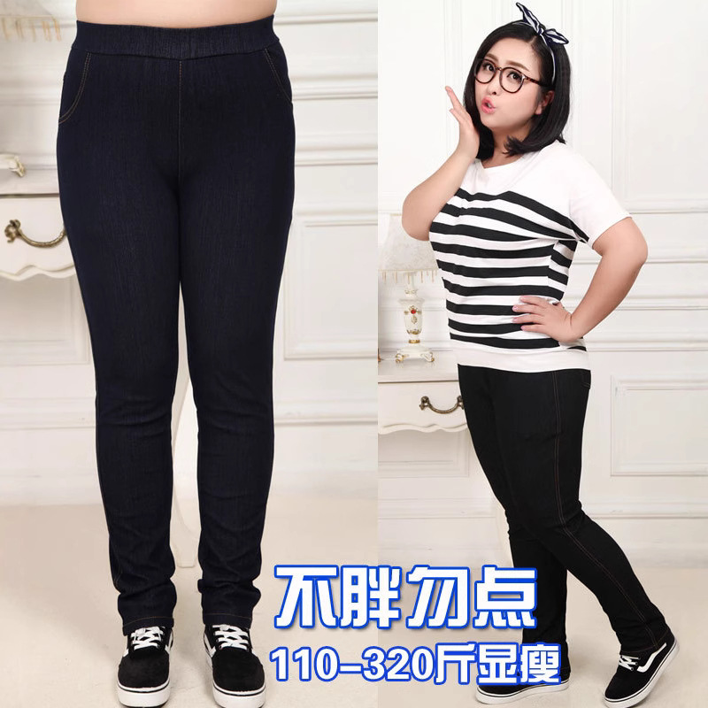 Celana panjang jeans kurus wanita, celana pensil elastis empat sisi Super ukuran plus pinggang tinggi lemak mm300kg regang 2023