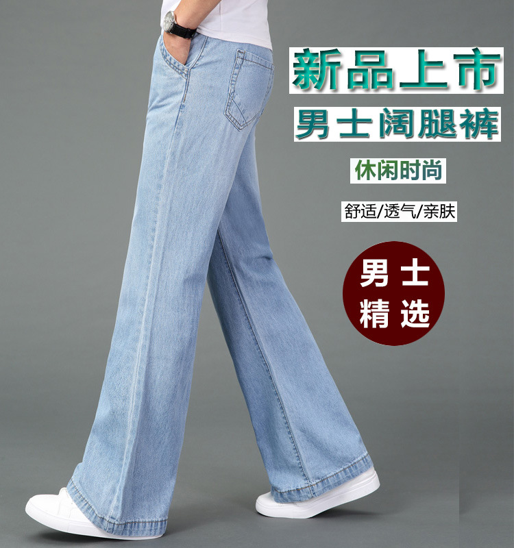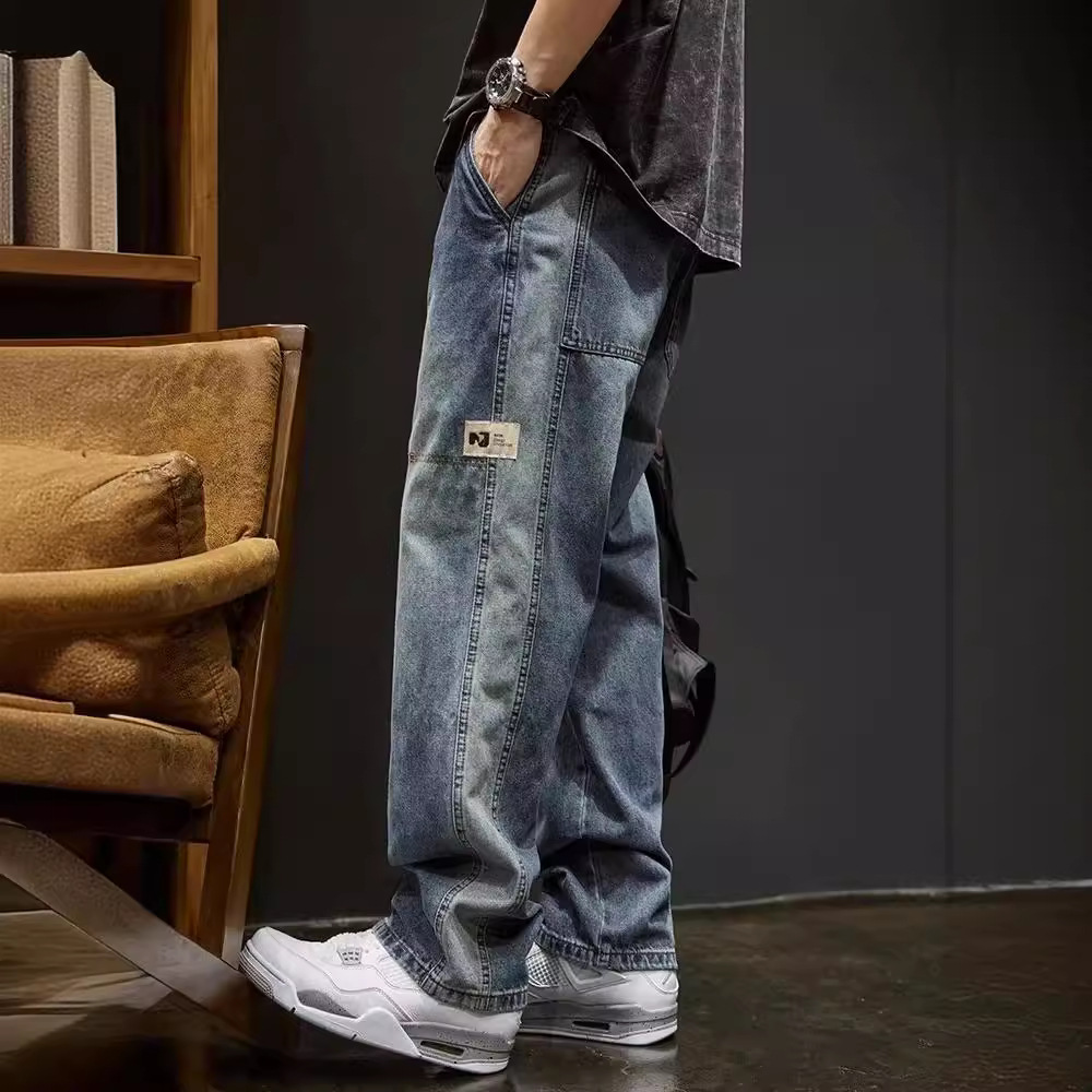 Produk Baru Musim Semi dan Musim Gugur Celana Jeans Lurus Pria Speaker Lebar Celana Panjang Longgar Tebal Kaki Lebar Kaki Lebar