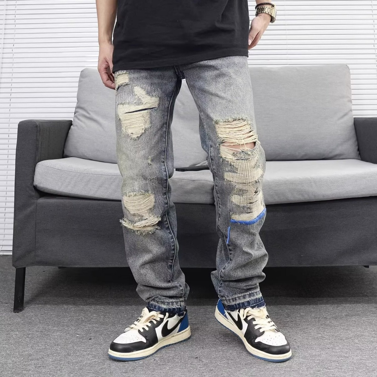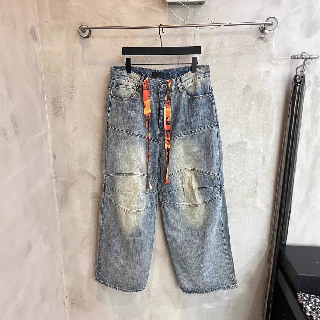 Celana Panjang Lurus Longgar Kasual Celana Jeans Berbentuk Siluet Tua dengan Tinta Buatan Tangan Gaya AC 24SS Celana Trendi