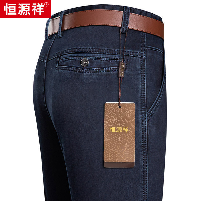 Celana Jeans Musim Gugur dan Musim Dingin Pria Ukuran Besar Longgar Lurus Tambah Gemuk Pinggang Tinggi Kuat Tahan Pakai Celana Kasual Pria Gemuk