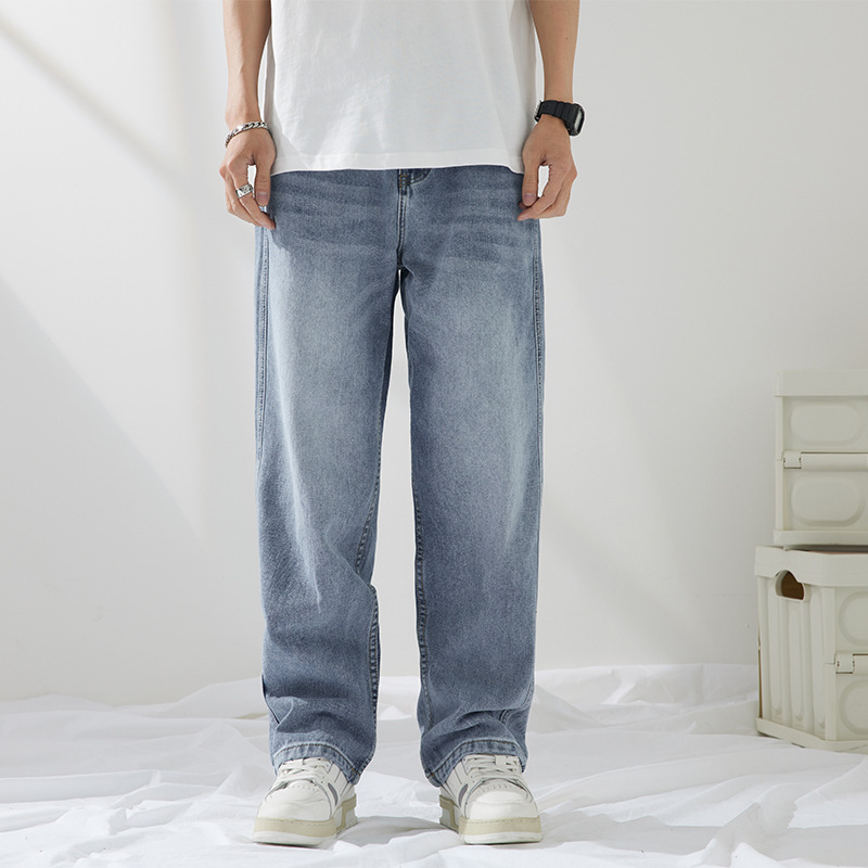 Celana Jeans Biru Muda Model Baru Musim Semi Musim Panas Celana Panjang Kasual Lurus Longgar Retro Gaya Amerika Musim Semi Musim Gugur Model Pria