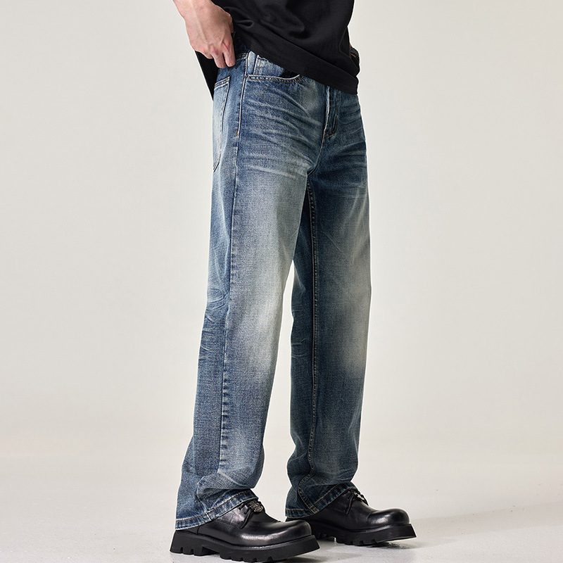 Celana Jeans Dicuci Air Model Trendi Nostalgia Retro Clanfit Celana Panjang Lurus Longgar Jalanan Gaya Amerika Merek Trendi Celana Kasual