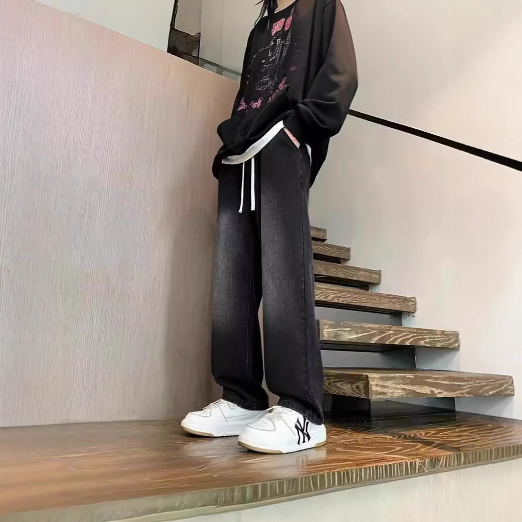 Pakaian Musim Gugur 2025 Celana Jeans Gradien Gaya Amerika Kaki Lebar Longgar Celana Lurus Jalan Tinggi Merek Trendi Pria Gaya Jepang Hong Kong Satu Generasi