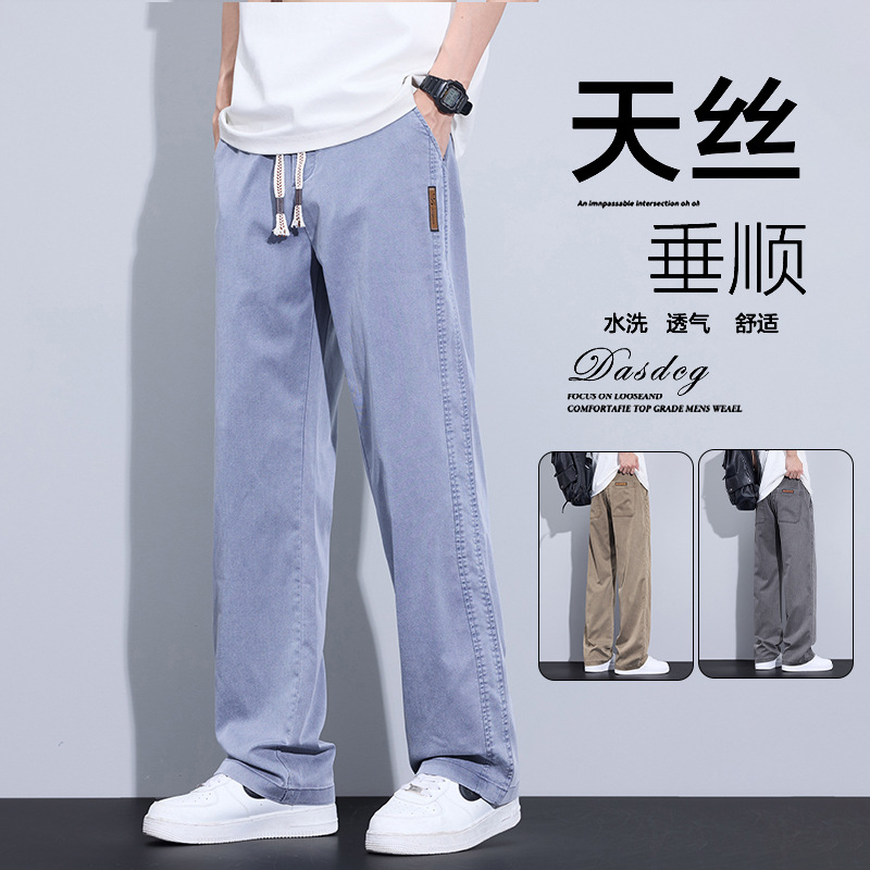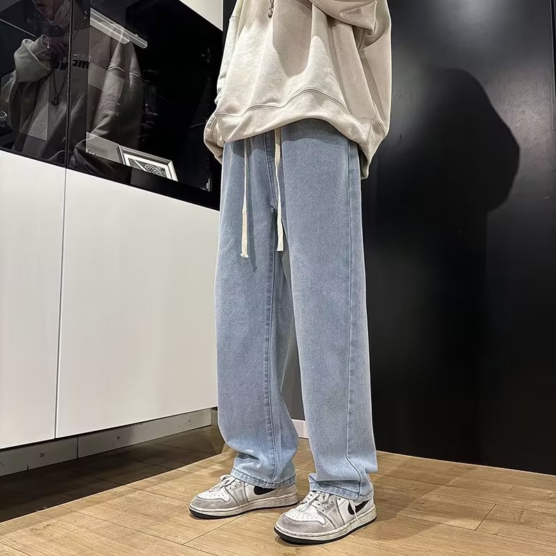 Celana Jeans Pria Model Baru 2025 Celana Kasual Lurus Longgar Gaya Dingin Sutra Es Merek Trendi Model Tipis Musim Panas Pria