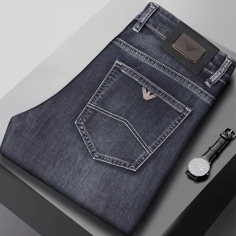 Celana Panjang Denim High-end Pria Model Tipis Musim Panas dan Musim Panas 2025 Celana Panjang Pakaian Pria Bisnis Mewah Ringan Kasual Model Baru Lurus Longgar