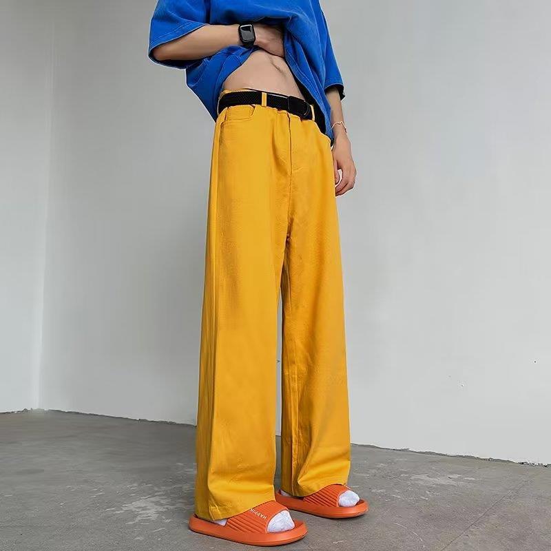 Celana panjang kasual musim gugur dan musim dingin, celana panjang kasual mode, jeans lurus longgar celup lumpur kuning dicuci, celana panjang gaya jalanan Amerika untuk pria