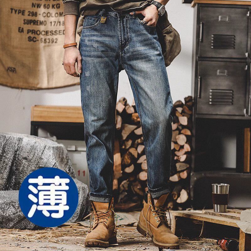 Celana Jeans Dicuci Model Lama Retro Gaya Amerika Musim Panas Super Tipis Celana Kasual Lurus Longgar Model Baru 2025 Pria