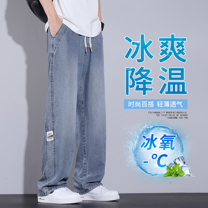 Celana Jeans High-end Guangzhou Xintang Town Celana Panjang Abu-Abu Longgar Lurus Model Baru 2025 Model Tipis Musim Semi Musim Panas Pria