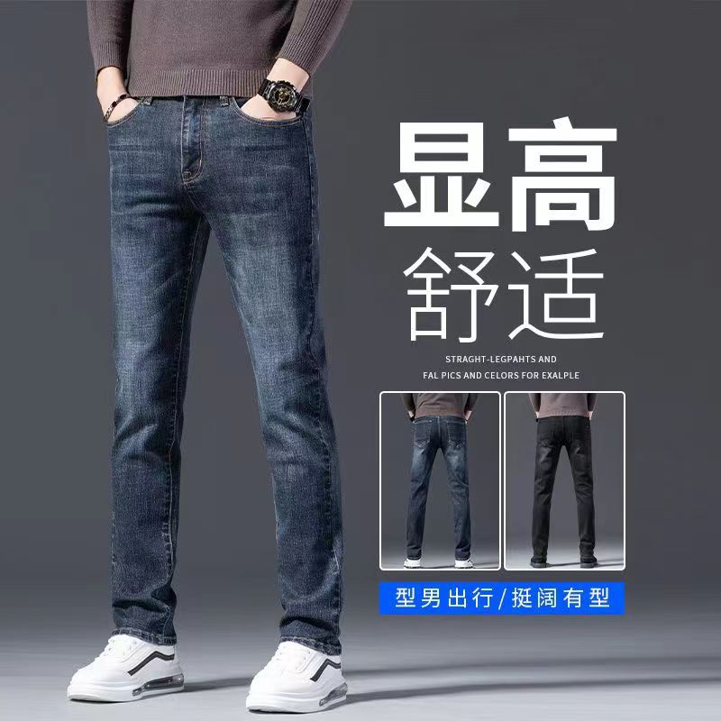 Celana jeans pria paruh baya, celana tebal elastis lurus longgar kasual bisnis untuk ayah, cocok untuk musim semi dan gugur.
