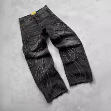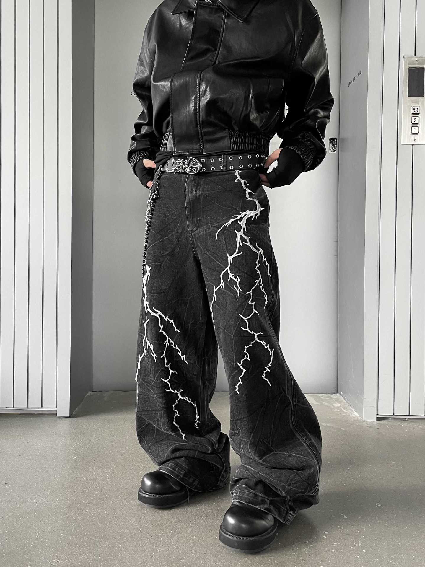 2025 Celana Jeans Longgar Petir Bordir Gaya Desain Niche Gaya Amerika