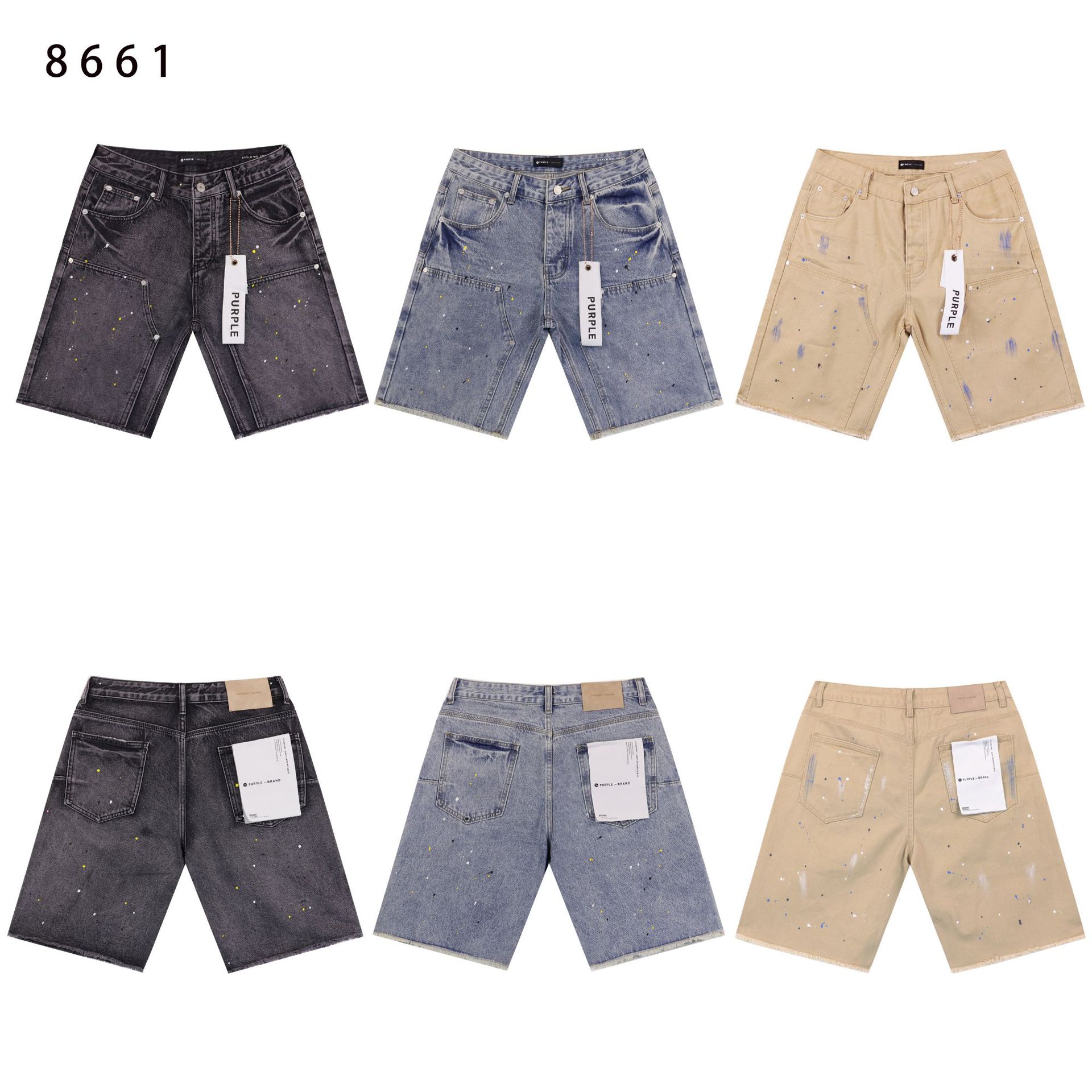 Purple Brand Celana Pendek Denim Tinta Graffiti Pria Wanita Musim Panas Model Amerika High Street Longgar Celana Lima Perempat Kasual Trendi