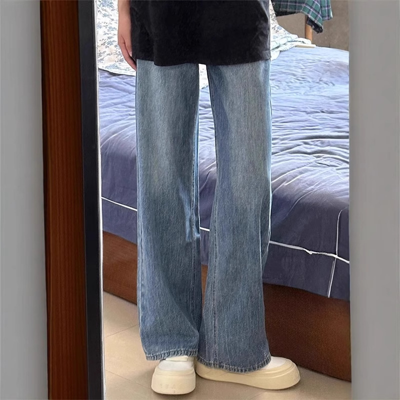 Celana Jeans Ukuran Besar Pencucian Air Gaya Amerika Musim Gugur 2024 Celana Lebar Kaki Lurus Wanita Berukuran Longgar Terlihat Langsing