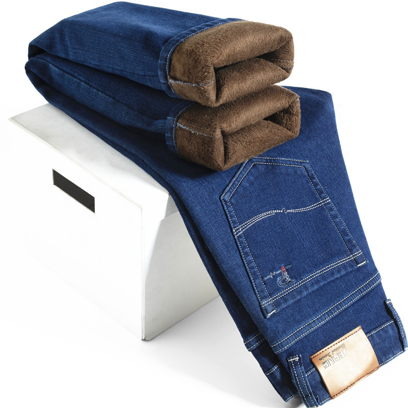 Celana jeans pria ukuran besar, celana jins ketat, tebal, bulu domba, celana pria ukuran besar, longgar, ukuran besar