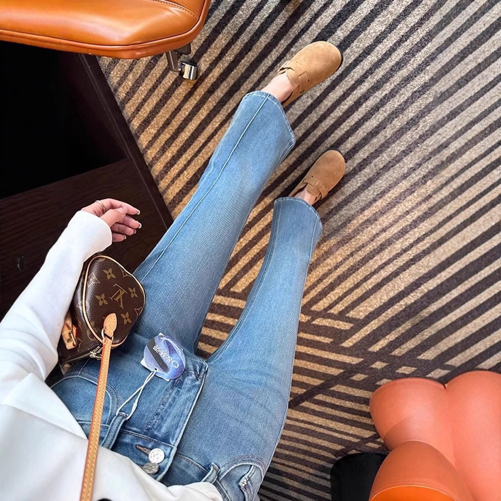Celana Jeans Mole Wanita Musim Semi 2025 Model Baru Ukuran Besar Bentuk Pir Berbentuk Pinggang Tinggi Terlihat Langsing Celana Speaker Sembilan Poin Elastis