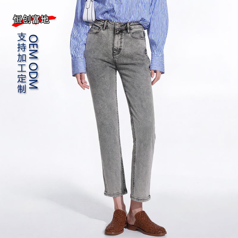 Celana panjang jeans tipis wanita, celana panjang kasual modis ukuran plus Eropa dan Amerika AliExpress stasiun independen 2023