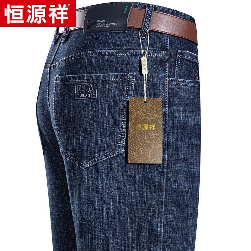 Celana Jeans Pria Hengyuanxiang Celana Panjang Elastis Pinggang Tinggi Paruh Baya Model Baru Musim Semi Musim Gugur Celana Lurus Longgar Kasual Bisnis