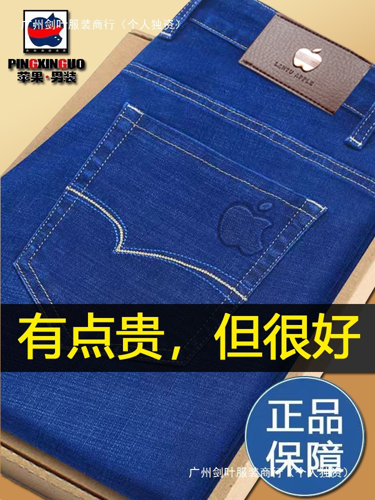 Celana Jeans Elastis Apple Celana Kasual Longgar Tebal Musim Semi Pria Celana Panjang Pria Paruh Baya Pinggang Tinggi Lurus Musim Panas Tipis