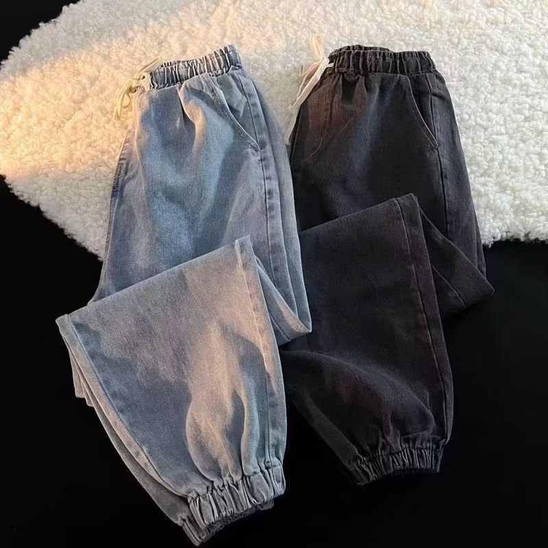 Celana Jeans Pria Model Baru Musim Gugur 2024 Celana Harem Tali Lurus Longgar Santai Gaya Amerika Tinggi Modis