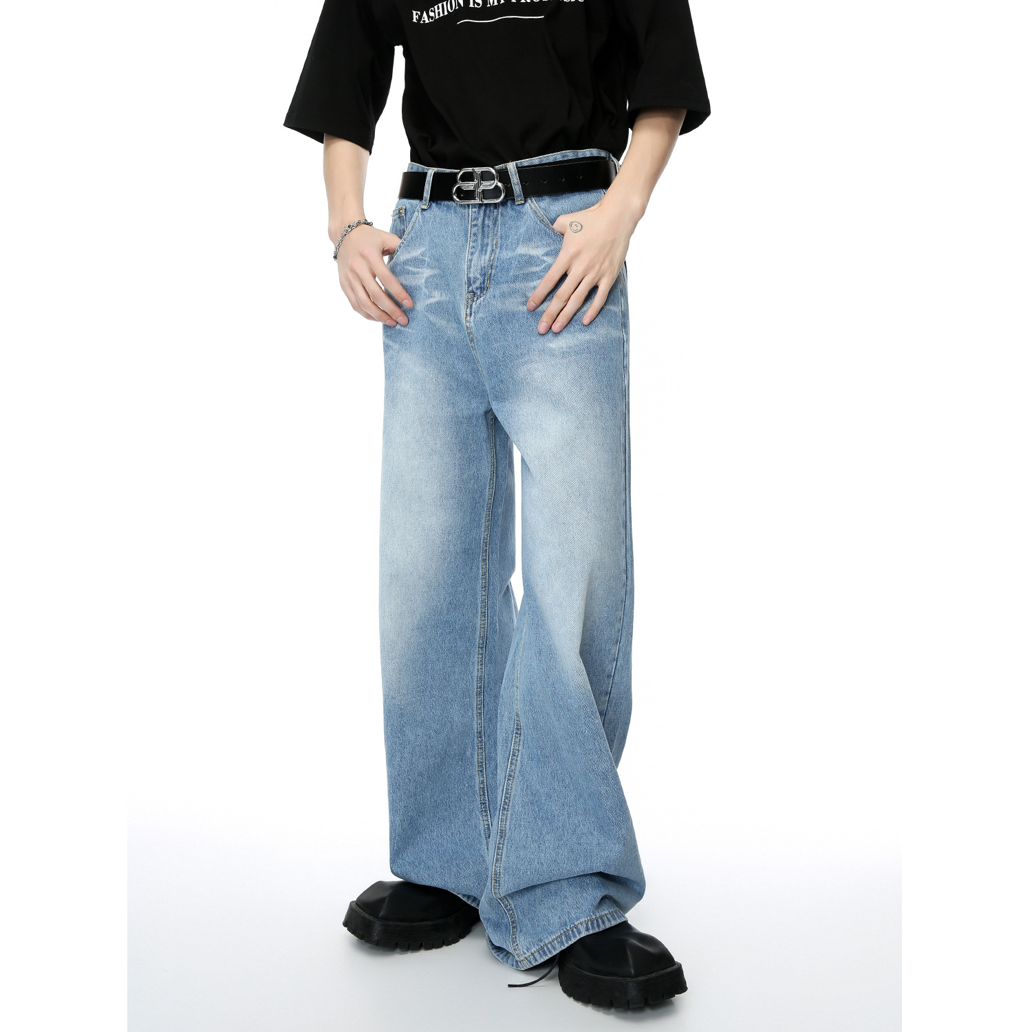 Qiqiu jeans Xintang chic pria, celana kaki lebar jalanan tinggi semua cocok gorden Amerika retro lurus longgar merek mode