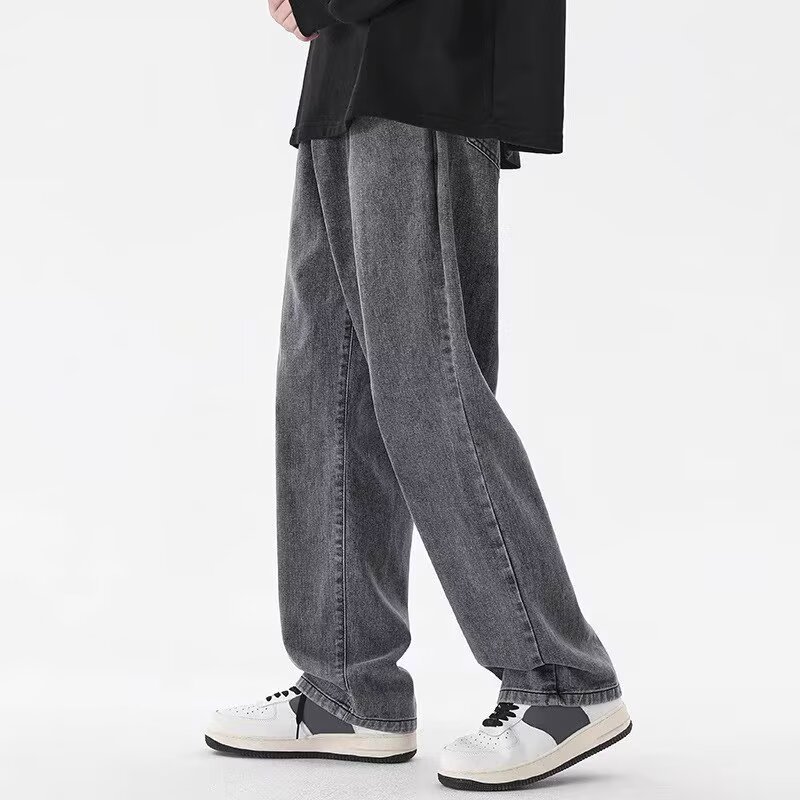 Celana panjang lurus longgar musim gugur gaya Hong Kong ukuran plus merek fashion Korea celana Ayah kaki lebar jeans fashion pria generasi rambut