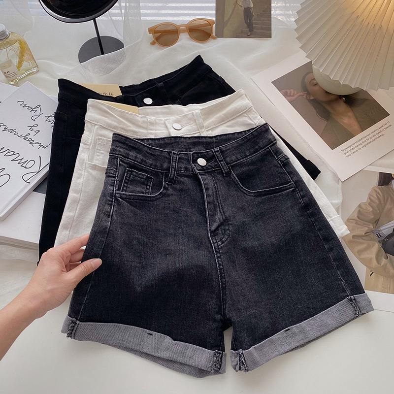 Internet selebriti 2022 baru celana pendek Denim longgar wanita musim panas robek pinggang tinggi celana panas a-line ins super Langsing mode kaki lebar
