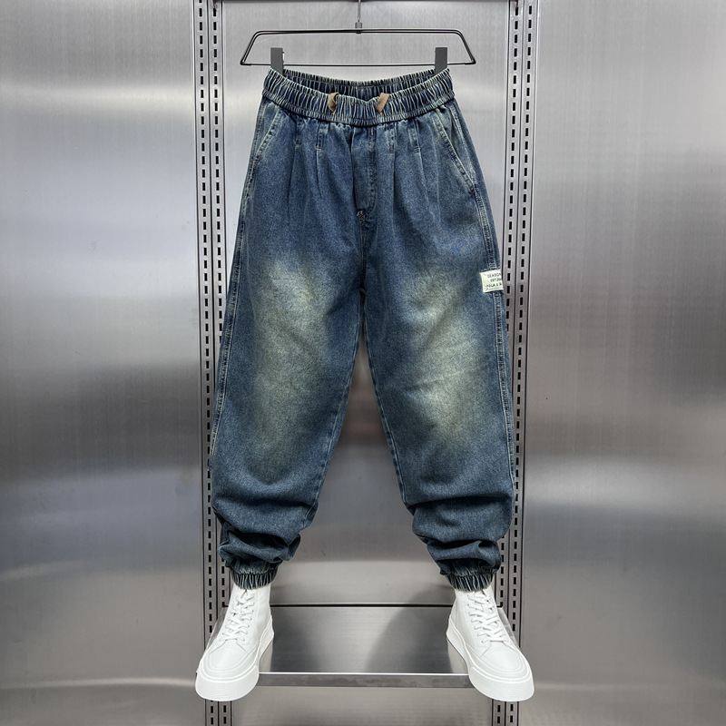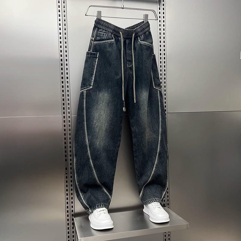 Celana Jeans Pria Celana Korset Merek Trendi Model Baru Empat Musim 2025 Celana Kasual Longgar Celana Harem Kaki Kecil Mudah Dipadu Padan Elastis Pria