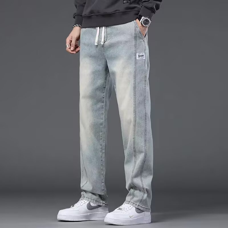 Celana Jeans Gaya Amerika Celana Panjang Pria Gaya Jepang Dicuci Air Gaya Kuno Gaya vibe Jalan Tinggi Gaya Eropa Amerika Longgar Modis Musim Semi