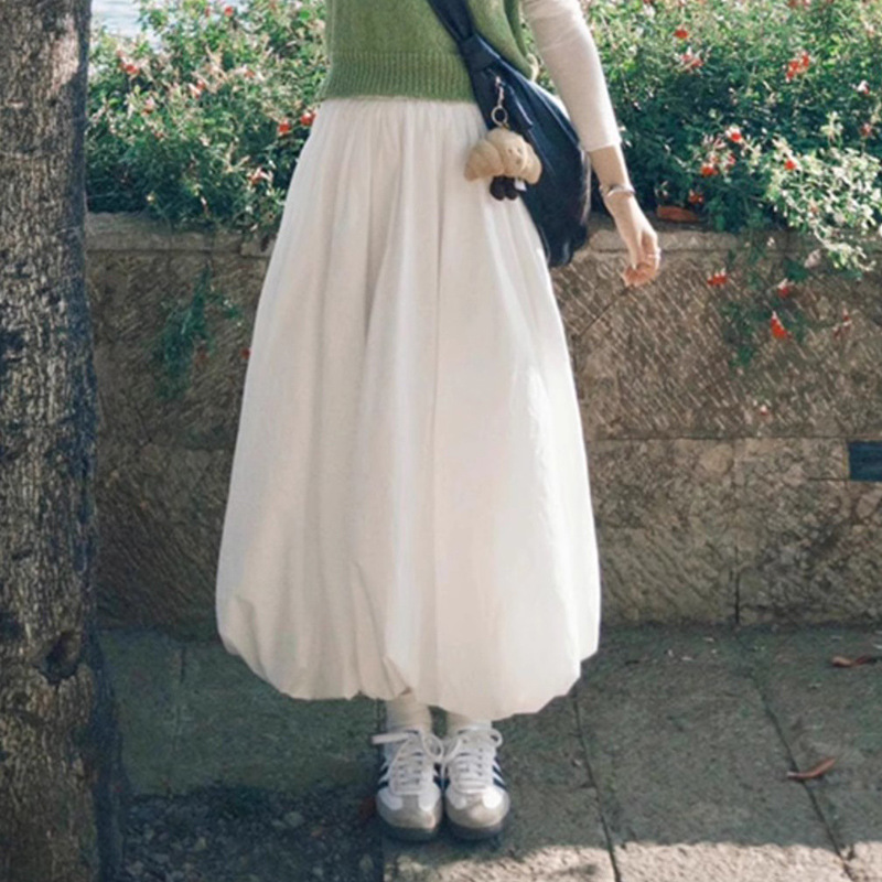 Rok Kue Ukuran Besar Musim Panas 2025 Rok Setengah Badan Pinggang Elastis Rok A-Line Mudah Dipadu Padan Modis Pinggang Tinggi Rok Panjang Terlihat Langsing 33032