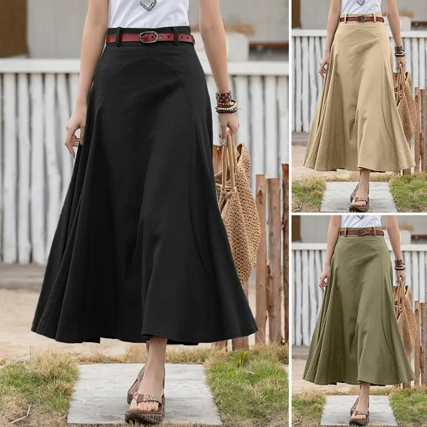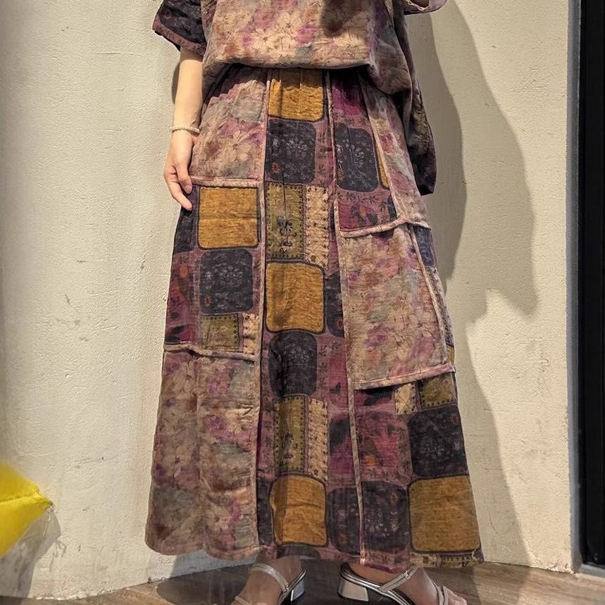 2023 musim semi dan musim panas rok katun baru rok panjang menengah longgar artistik retro rok workwear