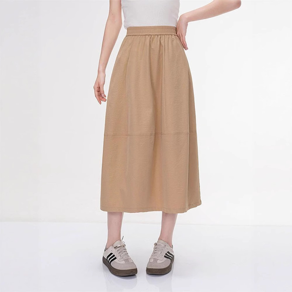 Rok Pakaian Kerja Celana Kasual Sutra Es Terlihat Langsing Longgar Model Tipis Musim Panas 2025 Rok Setengah Badan A-line Warna Polos Gaya Desain Wanita