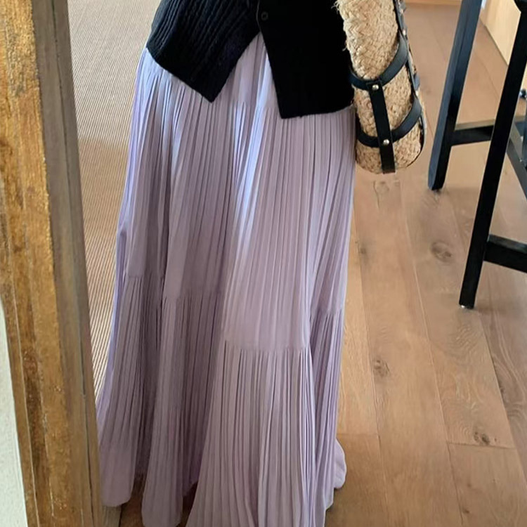 Xia Yayan Rok Setengah Badan Sifon Ungu Gaya Onuo Rok Lipit A-Line Longgar Wanita Rok Panjang Gaya Lembut