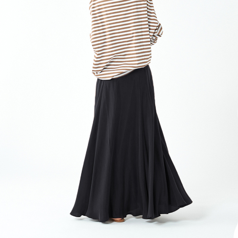 Rok ayun besar seperti sutra, rok panjang longgar belah samping tali pinggang elastis amonia tembaga asli