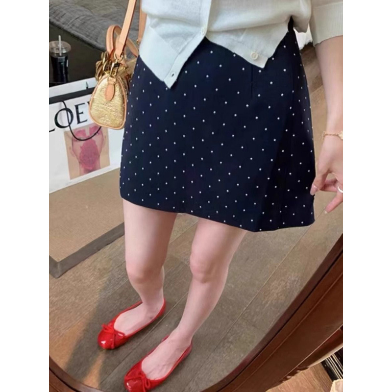 Rok Setengah Badan Polka Dot Warna Hitam Retro Ukuran Besar Celana Rok Pendek A-Line Anti Terungkap MM Gemuk Bentuk Buah Pir Terlihat Langsing Pinggang Tinggi Musim Panas Wanita