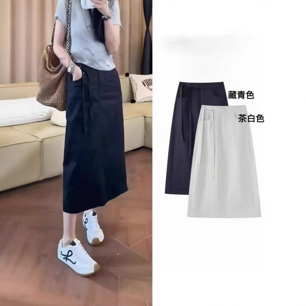 Rok Setengah Badan Mudah Dipadu Padan Modis Sederhana Model Baru 2025 Rok Lurus Longgar Pinggang Tinggi Wanita Gaya Desain Pita Tipis Model Musim Panas