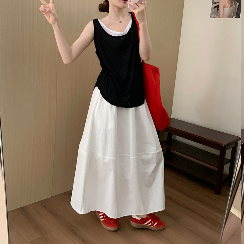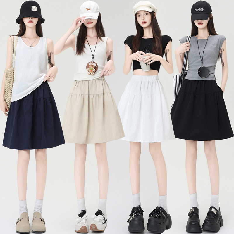 Rok longgar gaya Korea, rok wanita warna solid, longgar kasual, ukuran A- line, rok ayunan besar, perdagangan luar negeri 2024