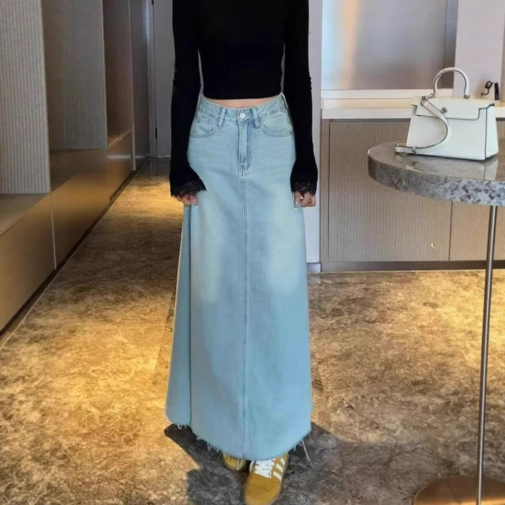 Rok Denim Perpanjang Ayun Besar Cuci Pinggang Tinggi Gaya Korea Ukuran Besar Musim Semi 2025 Rok Setengah Badan Terlihat Langsing Model Baru Musim Semi Tahun Baru