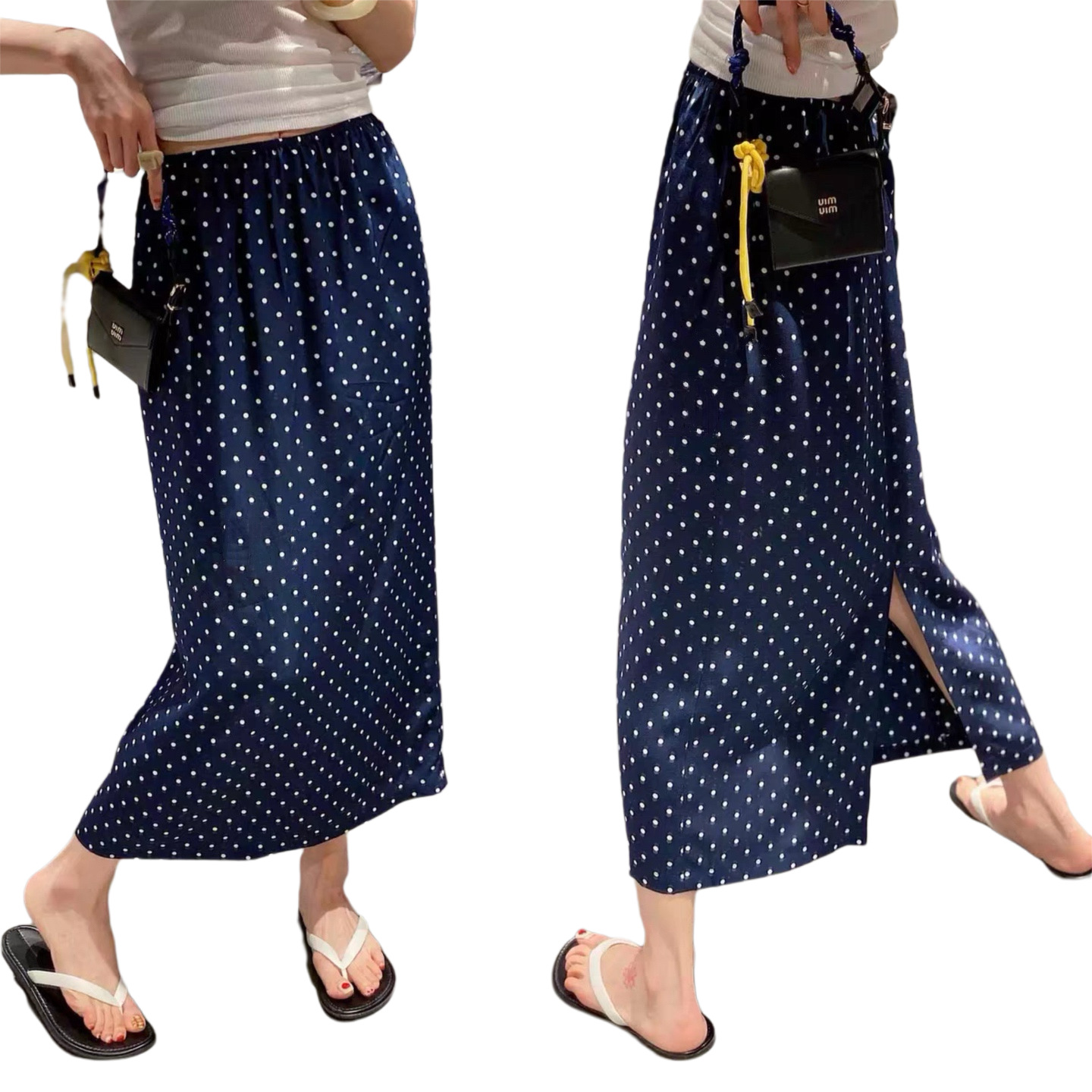 Rok Setengah Sutra Dicuci Pasir Perut Belakang Tabung Lurus Longgar