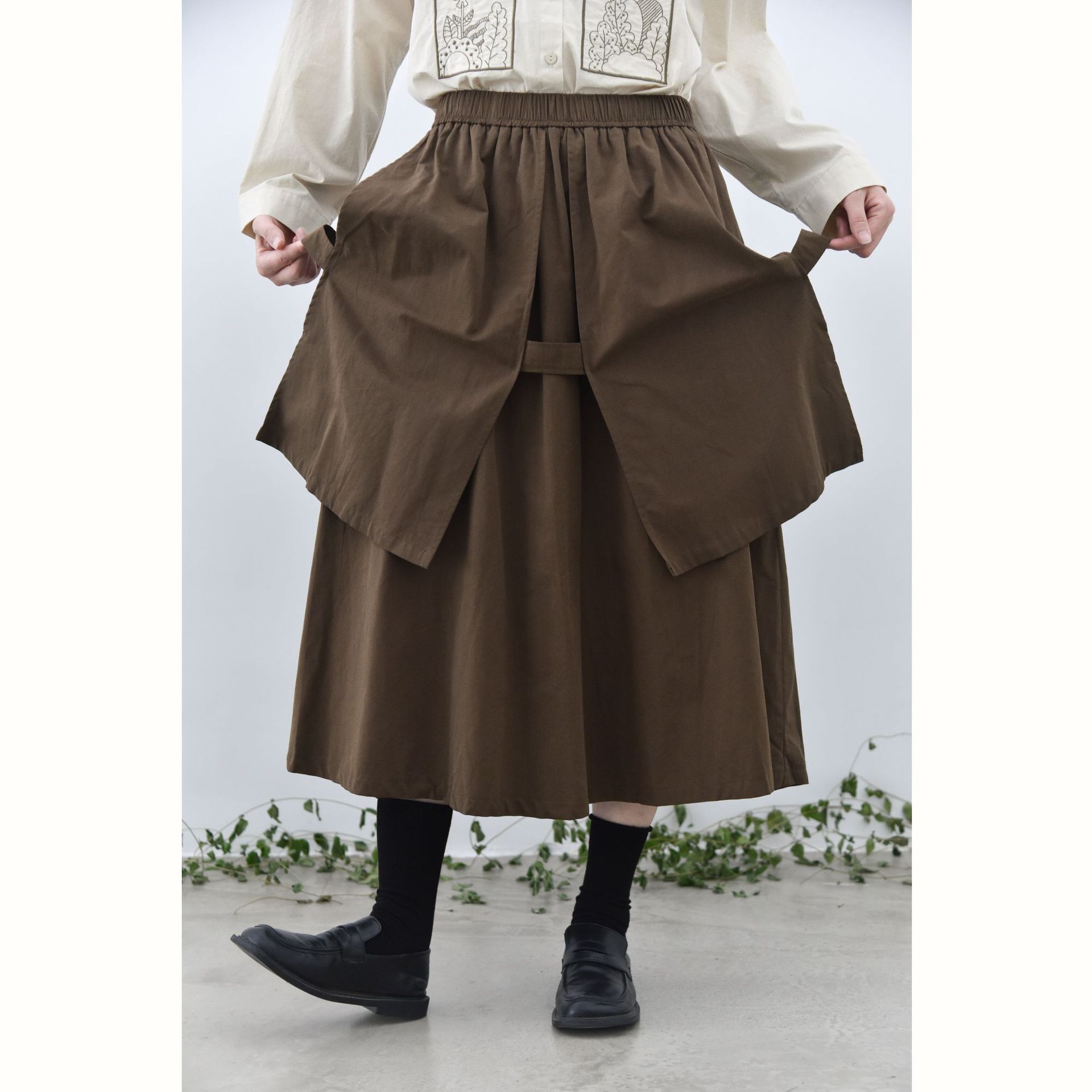 Tiga dan dua rok longgar cocok untuk semua, pakaian dekoratif laminasi desain dua potong palsu retro